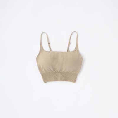 NWQLのニットブラは、糸づくりから縫製まで、佐藤繊維の独自技術を結集。縫い目を極限まで減らしたニット製法で、締めつけすぎず、体の動きに寄り添うようなフィット感に。