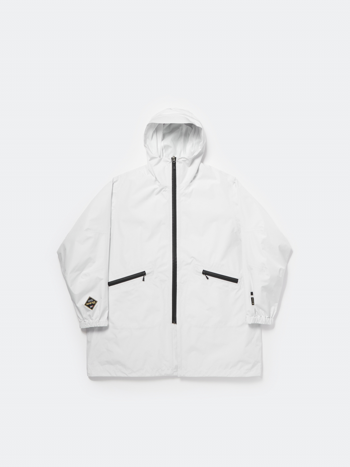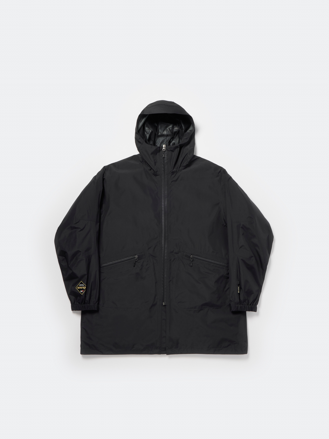 新構造の止水ファスナー「AquaGuard® Tightened」により、ウェア内への水の浸入を防ぐ。最大の特徴は、内側のドットボタンによって裾の長さを調整できる点。ロング丈とショート丈の2WAYで着用が可能で、スタイリングに合わせた変化を楽しめる。内側には大小様々なポケットワークを施し、メッシュライニングを採用することで収納力と快適な着用感を実現。
