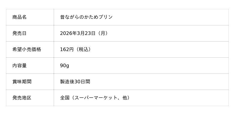 トーラク株式会社(本社:兵庫県神戸市東灘区向洋町西5丁目5番、代表取締役社長:毛利 功一郎)は、「昔ながらのかためプリン」を2026年3月23日(月)から全国発売いたします。