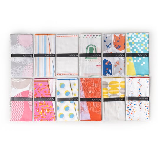 ブランド名は、日本の布文化を象徴する「包む」「たたむ」という所作の音に由来し、風呂敷でもハンカチでもない、暮らしに寄り添う新しい手ぬぐいをお届けします。