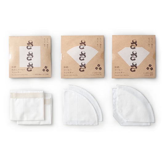 形状はドリッパーの形状に合う円すい型と扇型の2種類あり、一般的なドリッパーに対応。また、水出し専用タイプもあり、冷蔵庫で約12時間抽出することで、雑味のないクリアな飲み口と優しい甘みを引き出します。どのタイプも2~4杯分に対応し、繰り返し使えるため経済的で環境にも優しいアイテムです。