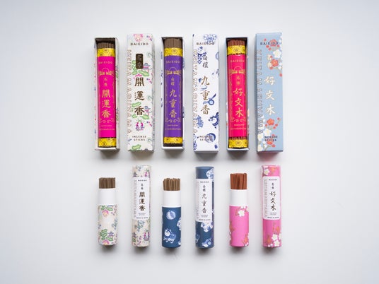 ラインナップは、梅栄堂を代表するロングセラー「好文木」「開運香」「白檀九重香」の3種類で、それぞれ100年以上の歴史を持ち、厳選された天然原料を使用した深みのある香りが特徴です。好文木は優しく華やかな香り、開運香は清涼感ある辛口の香り、白檀九重香は重厚で気品ある香りを楽しめます。