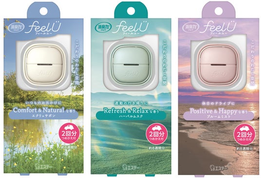 エステー株式会社(以下、エステー)は、車内のエアコン送風口に取り付けるカーフレグランス「消臭力 クルマ用 feelU(フィールユー) クリップタイプ」と、その「つめかえ」を10月13日から全国のスーパー、ドラッグストア、ホームセンター、カー用品量販店、ネットショップなどで新発売します。