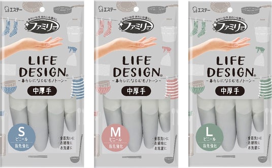 エステー株式会社は、保温性に優れ、指先強化で破れにくいモノトーンカラーの家庭用手袋「ファミリー ビニール 中厚手 ライフデザイン」を新たにラインナップし、3月26日から全国のスーパー、ドラッグストア、ホームセンター、ネットショップなどで新発売します。