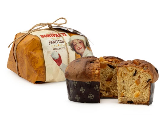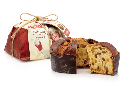 新鮮なバター、卵、オレンジの砂糖漬け、サルタナレーズン、バニラなど厳選された原材料を使い、酵母によってゆっくりと発酵させた生地から作られるパネットーネは、イタリアのクリスマスを彩る特別な味わいです。