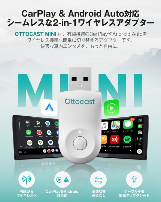 OTTOCAST Mini「スマホ視界ゼロ運転へ」OTTOCASTが提案する次世代ドライブスタイルです。