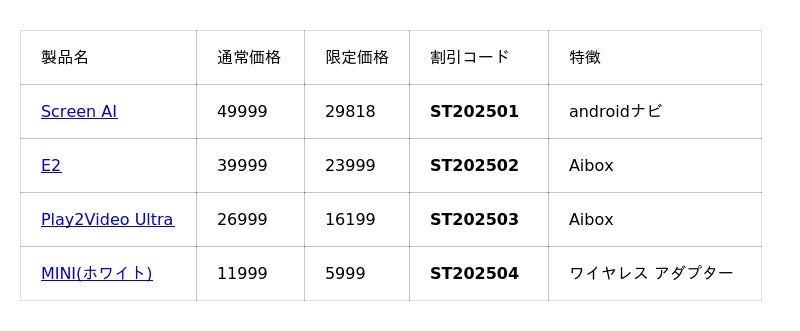 対象製品・特別価格一覧