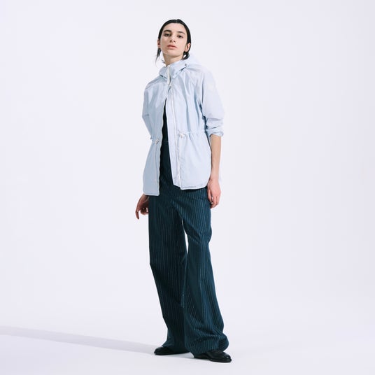 新色「アーリーフロスト」は、霧をイメージしたクールなアイスブルー。ジャケットとして身にまとうことで、魅力と洗練された印象が一層際立つ爽やかな一着です。
