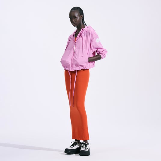 耐風性、耐久性、撥水性を兼ね備えたフェザーライトウィンドストップ生地を採用。ナイロン100%の素材により、まるで羽のような軽さを実現しました。さらに、ピンクに染まる朝焼けを思わせる旬のカラーが一押しです。