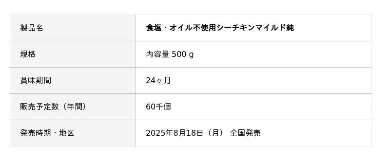 はごろもフーズ株式会社(本社:静岡県静岡市 社長:後藤佐恵子)は、食塩・オイル不使用の業務用シーチキン「食塩・オイル不使用シーチキンマイルド純」を発売します。