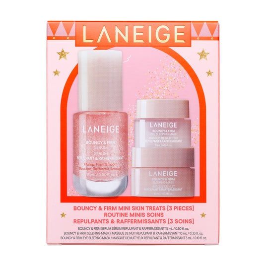 ご好評のバウンシーシリーズを一度に試せるスペシャルキットを限定発売。ミニサイズのバウンシーセラム、バウンシースリーピングマスク、バウンシーアイスリーピングマスクをセットにしました。目元から顔全体までの朝夜の集中ケアで、ふっくらしたハリと弾力に満ちた肌に整えます。3種のスキンケアをラインでお試しいただけます。