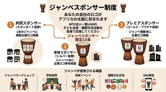 このたび当団体では、地域活動と国際交流活動を支える新たな取り組みとして、企業・団体の皆さまと共に社会活動を広げていく「企業パートナー制度」を開始しました。あわせて、活動で使用するアフリカの太鼓「ジャンベ」に企業ロゴを掲載する「ジャンベスポンサー制度(限定10社)」の募集もスタートしました。
