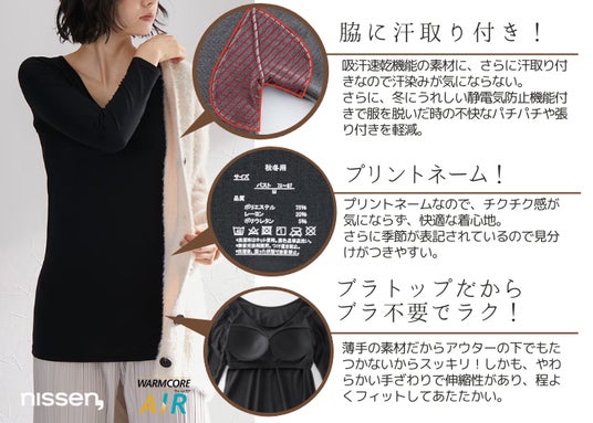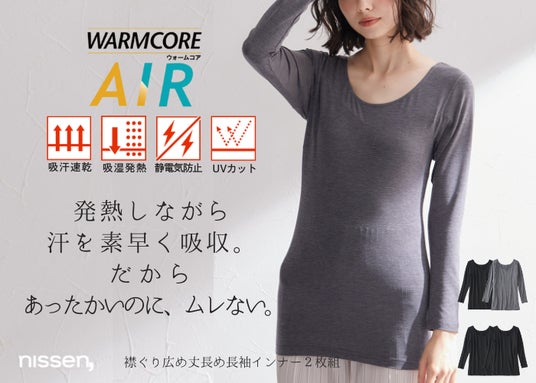 株式会社ニッセン(本社:京都市南区、代表取締役社長:羽渕淳)が展開する、あったかインナー『WARMCORE(ウォームコア)』シリーズにおいて、発熱しながら汗を素早く吸収・発散する『WARMCORE AIR(ウォームコアエアー)』にブラトップタイプの新作が登場しました。