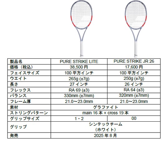 バボラVSジャパン株式会社(本社:東京都新宿区、カントリーマネージャー:梅原 充史)は、2024年1月に発売したコントロール系ラケットの【PURE STRIKE】シリーズに、新たなカラー「メタリックグレー」を追加し、8月21日から発売しました。