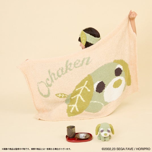 『お茶犬』より、モコモコ素材のブランケットが登場! 大きいリョクの柄がポイント!