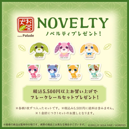 『お茶犬』の商品を税込み5,500 円以上お買い上げのお客様に〈フレークシールセット〉をプレゼント!