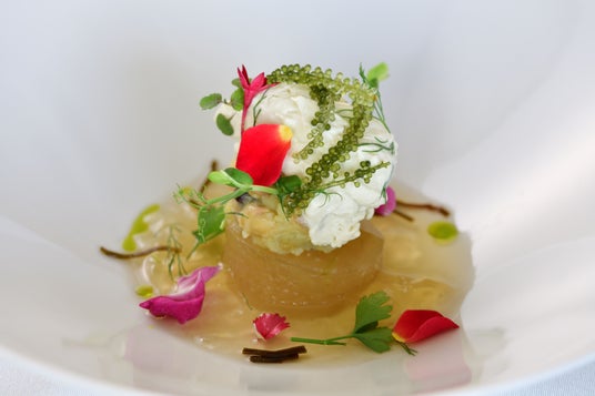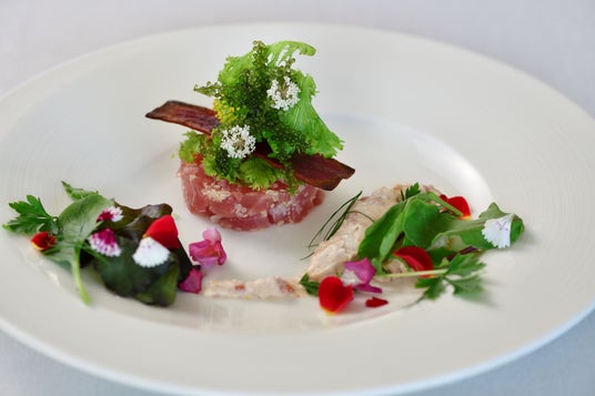 海辺に面したファインダイニングでは、身体の中から美しく健やかになるために、肉や魚、緑黄色野菜、海藻、豆類など、多種多彩な食材を組み合わせることで、栄養バランスと満足度を兼ね備えたウェルネスキュイジーヌを味わうことができます。ただ美味しいだけではない食体験が、ウェルネスステイをより一層充実したものにしてくれることでしょう。