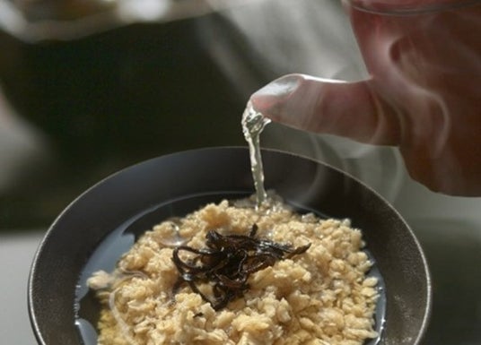 2.器を取り出し、箸で軽くほぐす。塩こんぶと出汁をかけて出来上がり!