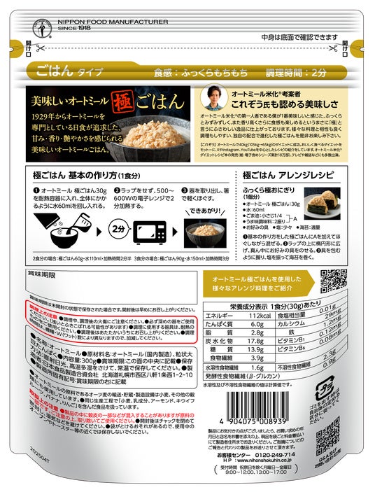 【商品ページ】https://www.oatmeal.co.jp/kiwami_oatmeal_gohan/