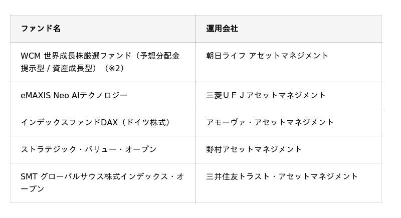 – ライジングスター部門2024年10月から2025年9月末に購入したお客様数が、昨年の同期間と比較した際に、伸び率が大きかったファンド