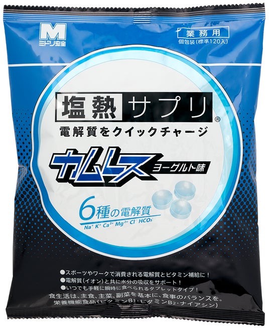 安全靴や作業着等を販売するミドリ安全株式会社(本社:東京都渋谷区、代表取締役社長:松村 乾作)は、ロングセラー塩熱飴シリーズの新商品として、かむ力が弱い方でも摂取しやすく、口の中で素早く溶ける熱中対策サプリメント「塩熱サプリ(R)カムレス ヨーグルト味」を、2025年8月より販売開始いたしました。