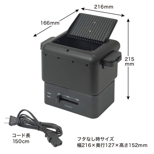 本製品は、卓上で揚げたてを楽しめる、コンパクトな電気フライヤーです。