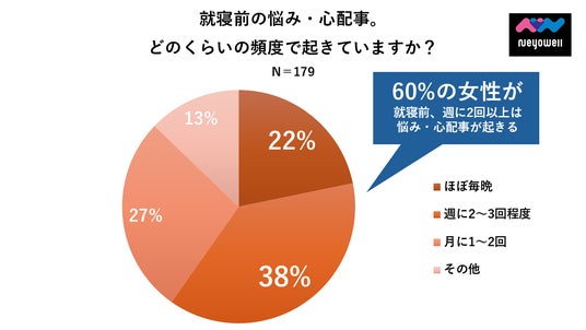 週に2日以上悩み事・心配事などで寝れないと回答した女性が6割に(NeyoWell調べ)