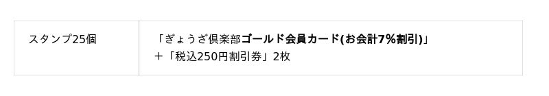 スタンプを集めると、各種割引券や、お会計が毎回最大10%割引になる「ぎょうざ倶楽部会員カード」と交換できます。
