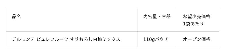 ■新商品:「ピュレフルーツ すりおろし白桃ミックス」