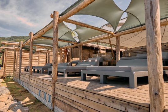 「Motona Beach Club」とともに楽しめる、プライベートサウナ。海を眺める全5つの個室サウナに水風呂・シャワー・外気浴デッキを完備。開放感溢れるアウトドアバスや海を眺めながらくつろげるファイヤープレイス、広々したガーデンが広がるレストハウスも併設。デッキには砂浜に繋がるステップも付いていて、サウナ後は海に直接ダイブしてクーリングもできます。