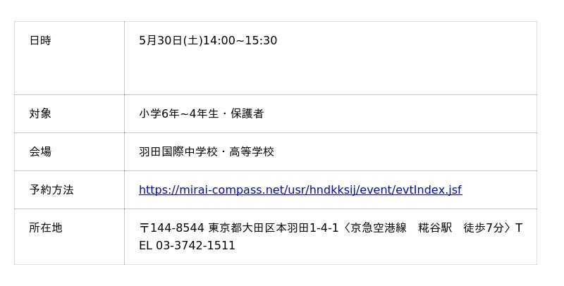 羽田国際中学校 プレ説明会