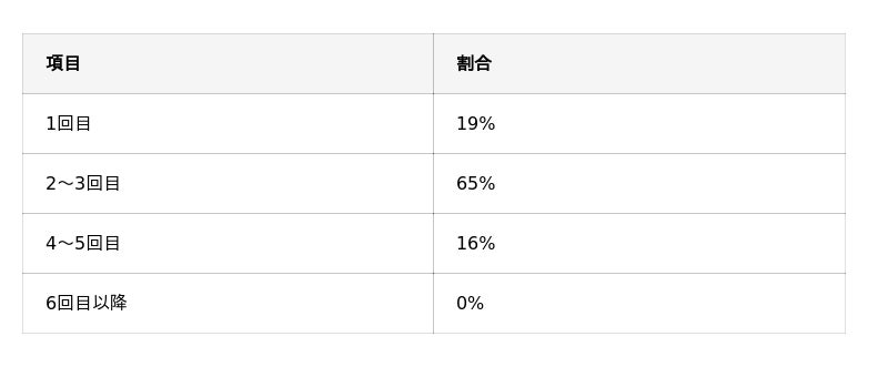 全体の約7割の人が施術を4回以上受けていることがわかります。