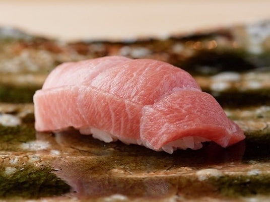 トロの海苔巻を振舞い、赤身、中トロ、大トロと握る。酢飯の温度を変え、抑揚をつけながら魚の持ち味を引き出す。
