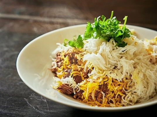 メニューはマトンかチキンを基本とするビリヤニ一種のみ。油を控え、食材の旨みとスパイスの風味を引き立てる。