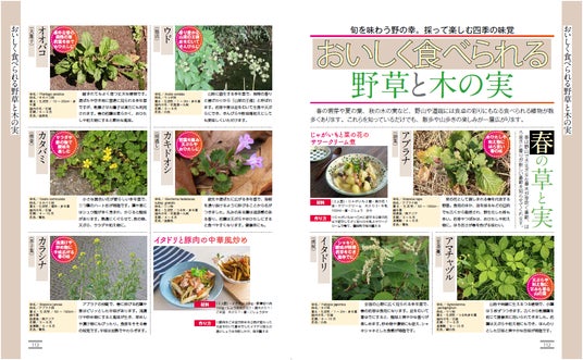 巻末には季節ごとに実際に自分で採取出来て、料理に使える草木、木の実を特集。新しい視点で、街や山道の植物を眺めることができます。