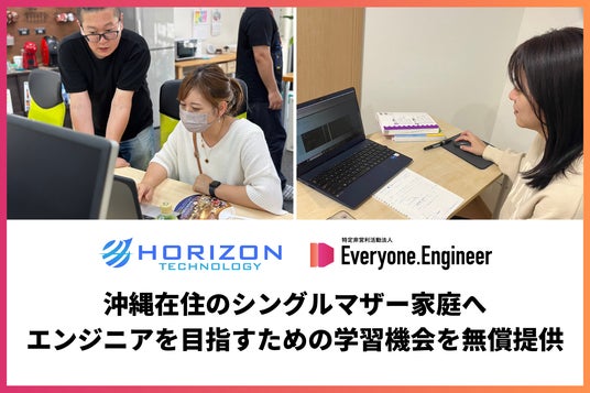 特定非営利活動法人Everyone.Engineer(本部:沖縄県浦添市、理事長:齋藤匠、以下:Everyone.Engineer、読み:エブリワンエンジニア)は、ホライズンテクノロジー株式会社(所在地:福岡県福岡市西区、代表取締役:大谷祐司)の支援のもと、沖縄県在住のシングルマザーおよびその家庭の高校生の子どもを対象に、エンジニアを目指すための6ヶ月間の学習機会を無償提供する奨励金プロジェクトを開始します。