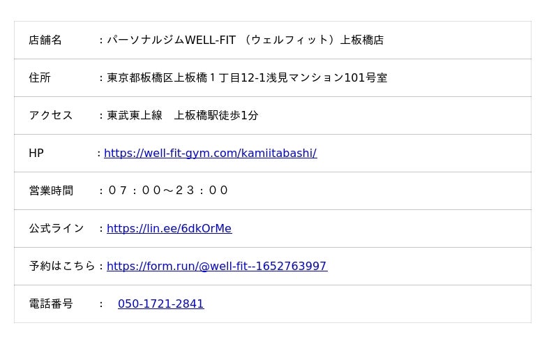 HP :https://well-fit-gym.com/kamiitabashi/