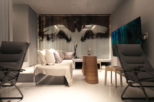館内には古美術から現代アートまで40点以上を配し、日本文化の象徴を随所に散りばめました。一部の作品は実際に購入も可能です 5。サウナ室、水風呂をはじめとした空間設計とともに、アートの力が心の深層に働きかけ、身体と精神の両面から再生へと導きます。