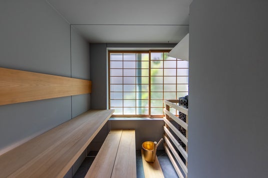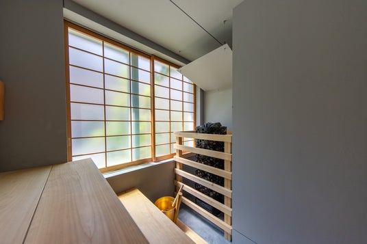 奈良・吉野産のヒノキを用い、鉋で仕上げた無塗装のベンチを設置。木の香りと静寂に包まれたプライベート空間は、まさに瞑想のためのサウナです。定期的に木肌を削り出すメンテナンスを行うことで、いつまでも新鮮な香りをお楽しみいただけます。窓辺には障子調の意匠を施し、都会にいながら和の趣と非日常感をご体験いただけます。