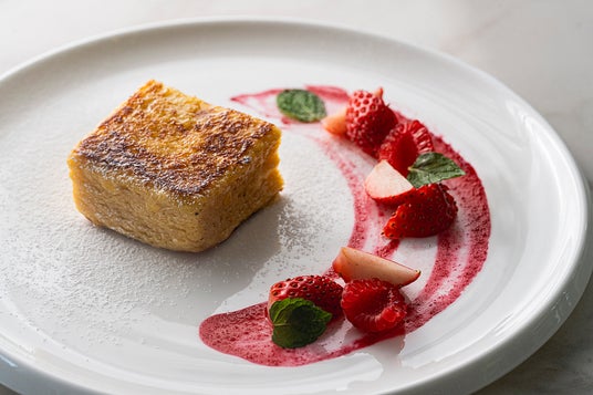 トリュフや和牛、カニを贅沢に使用した華やかなセイボリーを。ベリーのティラミスや小さなブッシュドノエル、香り高いトリュフのグラチネ、スパイス香るサバのタルトなど、冬の美味をひと口ずつ重ねて楽しめます。最後は、焼き立てのフレンチトーストに出来立ての冷たいミルクジェラートを添えて。