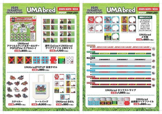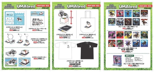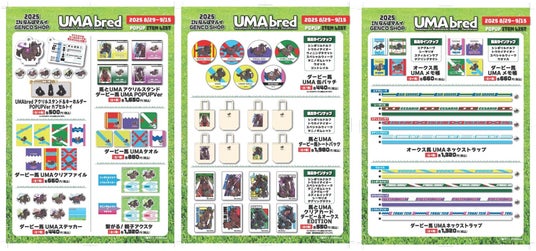 実在の競走馬・引退馬を「UMA」(ウマのようなモチモチアニマル)として描きおろすグッズブランド「UMAbred」は8/29より開催の「GENCO STORE」にて、これまでに販売した商品を”ほぼ”網羅して販売いたします。