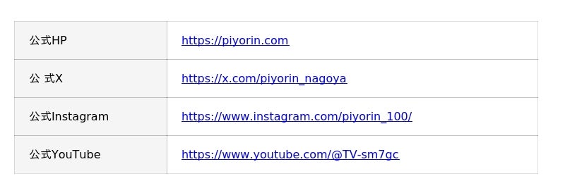 「ぴよりん」公式 HP・SNS