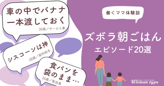 株式会社キャリアデザインセンター(本社:東京都港区 代表取締役社長兼会長:多田 弘實)が運営する、働く女性のためのWebマガジン『Woman type(ウーマンタイプ)』は、育児と仕事を両立する働くママ100人を対象に調査した「我が家はこれで乗り切ってる!究極ズボラ朝ごはん」の体験談をまとめた記事を公開しました。