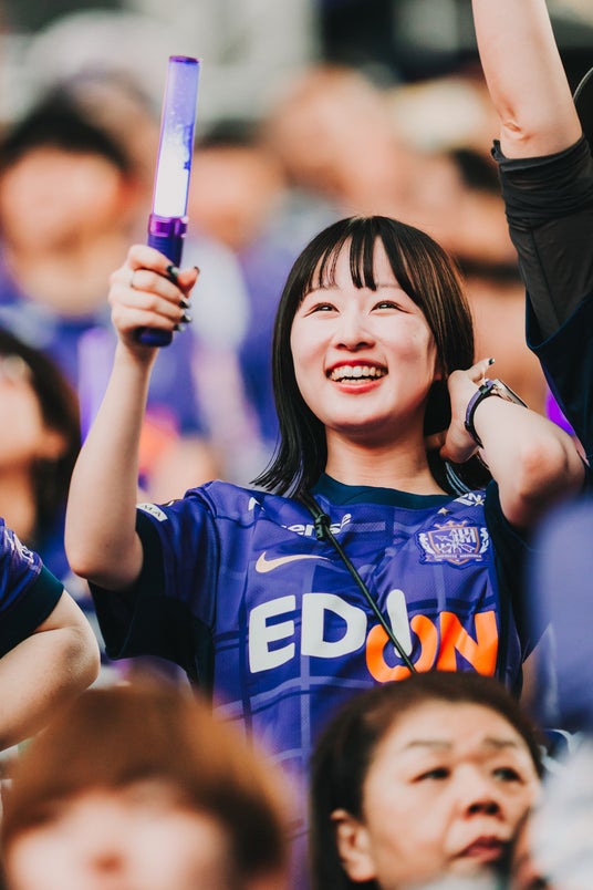 チャントメドレーに合わせて光る音連動ペンライトやカラフルな花火がスタジアムを彩り、一体感を創出。スタジアムにチャージされたエナジーが後半に向かう選手たちに伝わります。