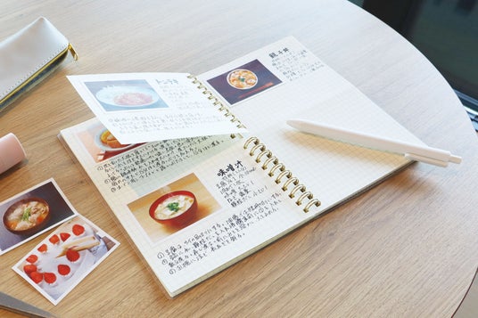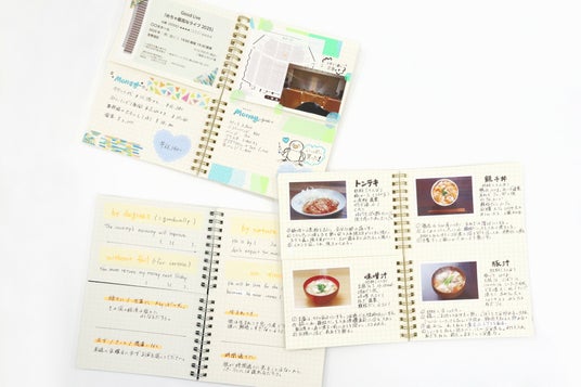 横幅を広く設計し写真を貼っても書くスペースを確保、リングタイプ・無線綴じから選べるノート