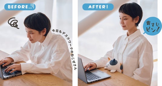 ◆シャキッとした背筋に早変わり! あなたの姿勢を、猫さんがサポートします!