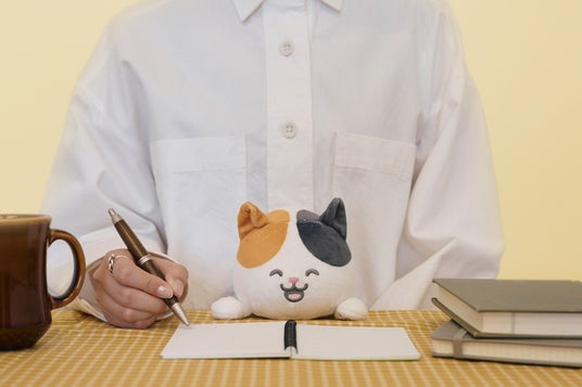 やさしくにっこり笑った表情で、見ている方まで楽しくなってきそうな「三毛」。自宅やオフィスでのデスクワークや学校の課題を一緒に勉強するときの心強いおともになってくれそう。顔の刺しゅうは濃すぎないグレーにし、やわらかい表情に仕上げています。