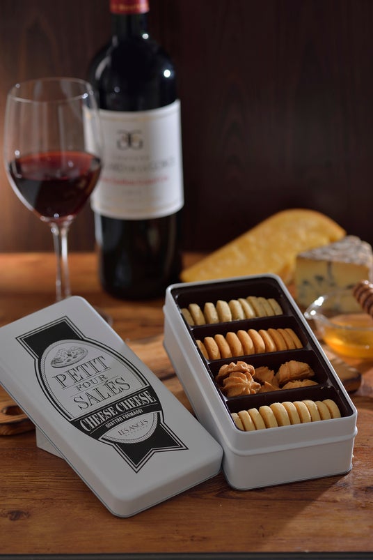 本商品は、ワインと楽しむ“大人のための塩味クッキー缶”として開発しました。チーズの個性を活かした3種のクッキーに、アクセントとなるはちみつクッキーを詰め合わせました。甘さと塩味が重なり合う、まるでチーズにはちみつを添えたような深い余韻をお楽しみいただける商品です。チーズラベルを思わせるデザイン缶は、贈り物としてもお選びいただけるよう、上質で遊び心のある仕上がりにしました。
