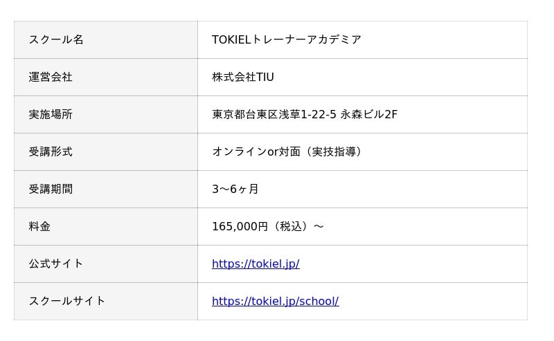 ■ TOKIELトレーナースクールとは