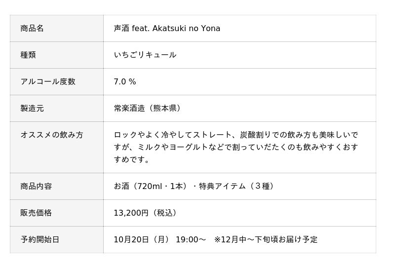 声酒・音酒ショップ(運営会社:株式会社Hot Pod、本社:東京都足立区、代表取締役:山本 晃史)は、漫画『暁のヨナ』と、その著者である草凪みずほ先生の故郷・熊本県の酒蔵「常楽酒造」が造る「いちご酒」とコラボレーション。そしてそのお酒を造る工程で、作品ゆかりの音楽をじっくり聴かせたお酒商品「音酒 feat. Akatsuki no Yona」の販売数量限定にて予約受付を2025年10月20日(月)19:00より開始いたしました。商品のお届けは12月中~下旬頃を予定しております。